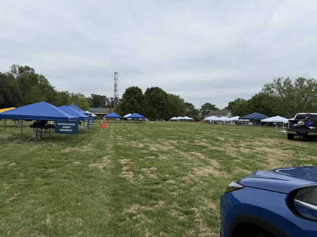 Although the sky was a bit overcast Saturday, our team of extraordinary Optimists and volunteers placed all the tents on the field and we are ON for Sunday. Tomorrow morning we push the tents up to full height, wipe down what's still wet from the overnight rain, and open the doors for the SHOW TO BEGIN at noon.