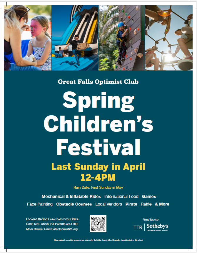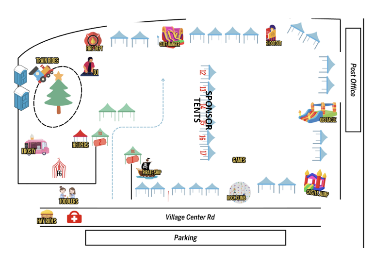 Here's a view of the flyer you will see showing up around town soon. And here's a draft of the field with the inflatable rides distributed around the perimeter and vendor tents in between. If you are interested in volunteering, we would welcome your help on 4/25 and/or 4/26. Please sign up at Volunteer Now!